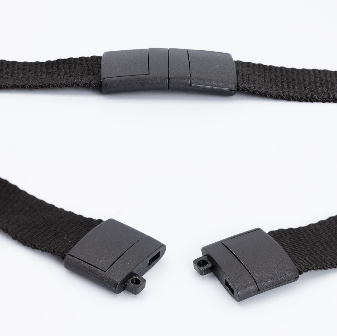 Our lanyards are made from slim, ultra-comfortable fabric perfect for convention conditions. When your hands are full of merch or wearing fursuit paws, the last thing you need is something snagging and dragging across your throat. The curved breakaway unit ensures safe usage while comfortably conforming to the neck.